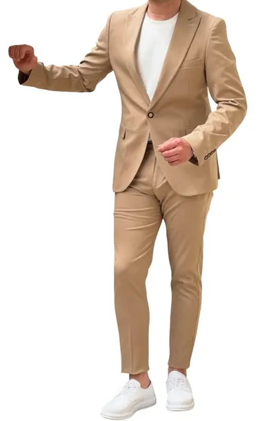 Garnitur Beż Slim Sportowy Elegancki Wizytowy Gust Man Bawełna 52/34 L/XL