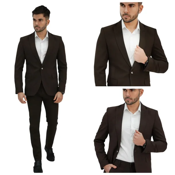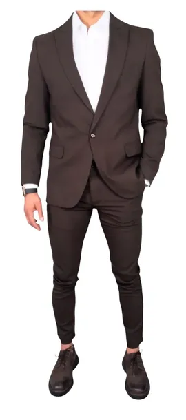 Garnitur Komplet Męski Ciemny Brąz Slim Fit Sportowy Elegancki roz 52\33