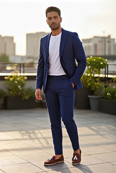 Garnitur Komplet Niebieski Chaber Sportowo Elegancki Wizytowy Slim 48/32 M