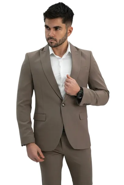 Garnitur marynarka spodnie męskie slim ciemny beż rozmiar 52\34 rozmiar L