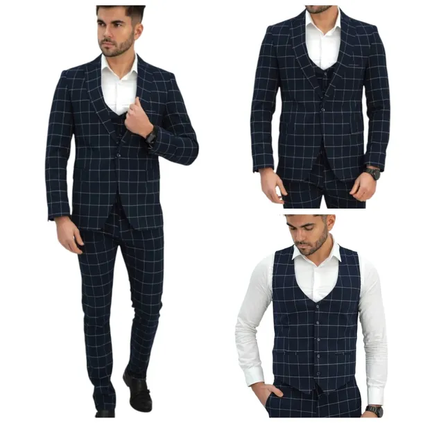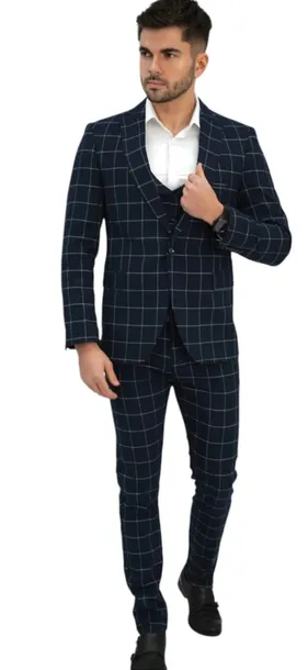 Garnitur męski granatowy komplet w kratę roz.52\33 L