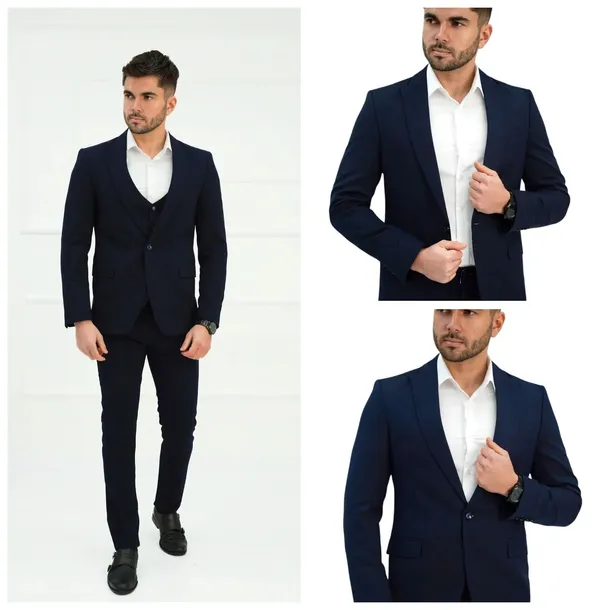 Garnitur Męski Granatowy Slim Fit Elegancki Casualowy komplet roz 52\33 L