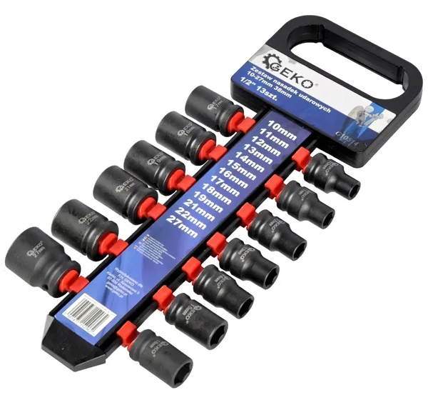Nazwa towaru:Zestaw nasadek udarowych 1/2" 10-27mm 38mm 13szt. GEKO