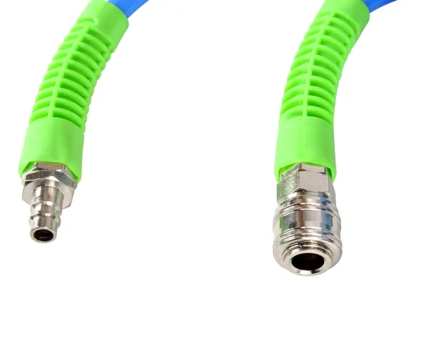Wąż pneumatyczny poliuretanowy wzmocniony siatką poliuretanową. Niezwykle lekki i wytrzymały, dzięki temu idealnie nadaje się do użytku zarówno wewnątrz, jak i na zewnątrz pomieszczeń. Przewód jest kompletny, okuty w standardowe szybkozłącze i wtyczkę.