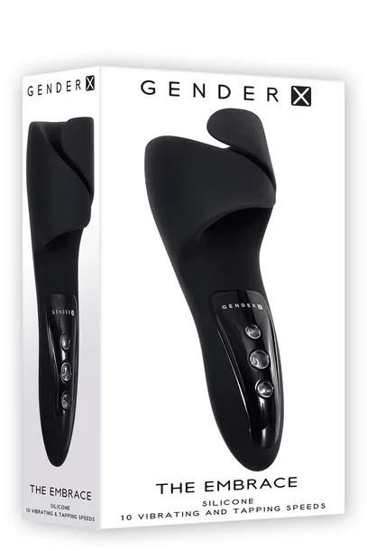 This unique vibrating, pulsing cradle has two powerful motors that work together for your pleasure. Two wing-shaped tails almost intersect like an embrace to create a circular nest that buzzes and throbs in 10 different speeds – with 3 different intensities each! Wrap yourself in good vibes that deliver an intensely erotic experience – all navigated with ease by a simple 3-button control on the ergonomic handle! Take your thumping vibe into the bath with you as it’s completely submersible, and clean in a snap with toy cleaner and water.Vibrating, pulsing cradle vibe10 vibrating and tapping speeds3 levels of intensity per functionMotors controlled togetherFlexible double-flap embraceErgonomic handle, easy to use controlsButtons light up when in useMade from creamy smooth siliconeDetail made from black-finished ABS plasticWaterproof & submersiblePhthalate & latex freeMagnetic rechargeable, USB cable includedH x D x W: 7.32 x 3.31 x 2.28 inch / 18,6 x 8,4 x 5,8 cm Gender X The toy line Gender X is a full collection of innovative shapes and buzzworthy devices that enrich playtime for everyone. These inclusive toys are all about what you could call a ‘universal imagination’. It’s a ‘wall for all,’ where the shapes and functions speak for themselves, allowing customers to discover their own pleasure, no matter what that looks like for them. Because some people use G-spot toys for their prostates, and vice-versa, so why not have a line that doesn’t impose any particular application at all! People can recognize the shape they want and make their own decision about how they’ll use it — that’s the key to Gender X.The line includes an array of shapes, sizes and categories, from wands to quadruple stimulators, neon-clear plugs and strokers. Kits, remote toys and partner play products are also included. The line emphasizes form and function over gender suggestion or niche marketing. The simple, unspecific packaging is the point. There is no prescribed way to play — find w