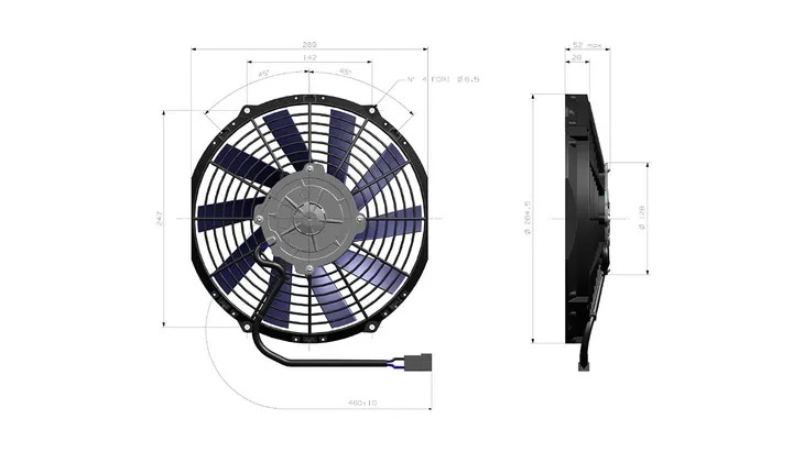 Wentylator osiowy firmy General Cab, cechuje się wysoką jakością wykonania, trwałością, niezawodnością oraz mają duży współczynnik odporności na wilgotność wynoszący IP68. Napięcie zasilania wentylatora osiowego wynosi 24 V, kierunek pracy - ssący, średnica wiatraka to 255 mm (10 cali). Wentylator osiowy cechuje się również uniwersalnością, więc można go wykorzystywać w kabinach i przedziałach pasażerskich lub przestrzeni ładunkowej busów, autobusów, łodzi, camperów, ciągników rolniczych i maszyn budowlanych.