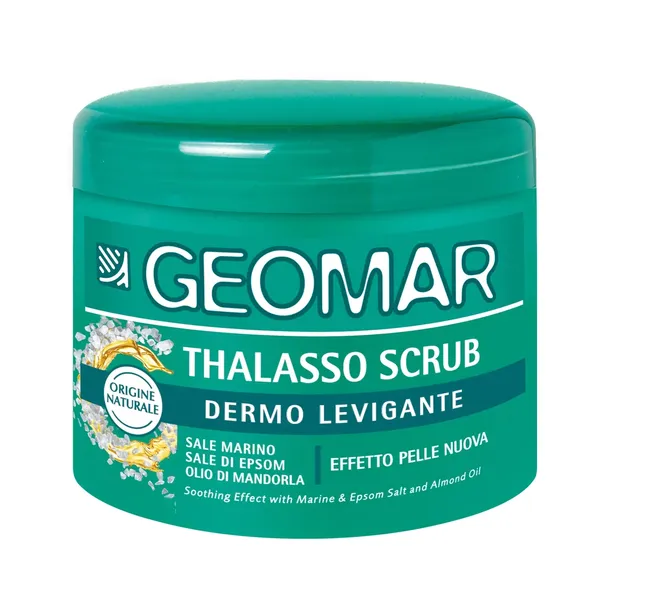 Thalasso to peeling do ciała włoskiej firmy Geomar. Ten włoski kosmetyk delikatnie i skutecznie usuwa martwe komórki, jednocześnie pozostawiając skórę żywą i naturalnie jedwabistą. Nowatorska formuła sprawa, że produkt działa przeciw starzeniu, a dzięki olejkom z migdałów, kiełkom pszenicy i witaminom A E ożywia i pielęgnuje skórę. Produkt nadaje także tkankom dodatkową elastyczność, ujędrniając jednocześnie skórę.