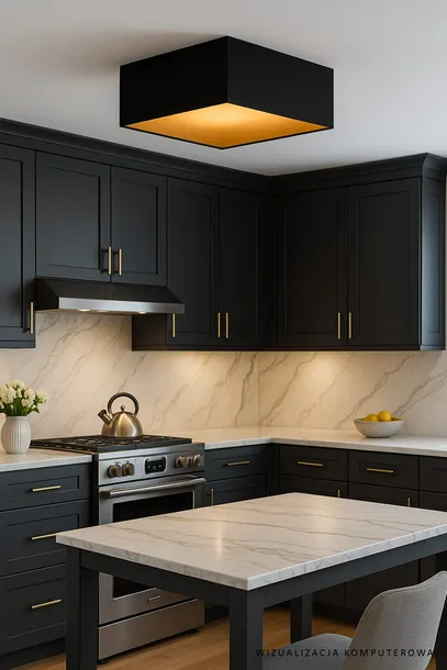 Geometryczna lampa sufitowa do salonu z kwadratowym abażurem ze złotym wnęt