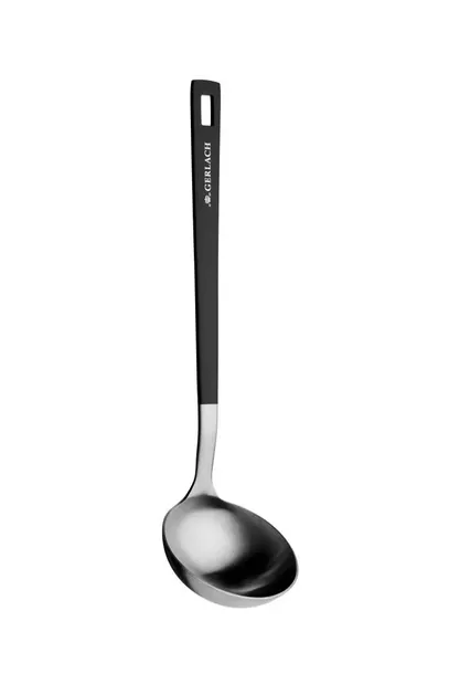 - Rączka jest pokryta matowym czarnym lakierem, a użytkowa część została wykonana ze szczotkowanej stali nierdzewnej.