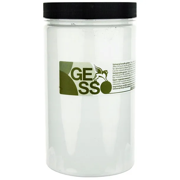 - Gesso to uniwersalny grunt malarski w formie gęstej farby podkładowej,