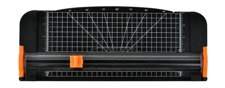 ✅Ułożenie papieru oraz określenie linii cięcia ułatwia podziałka wyrażona w centymetrach i calach.