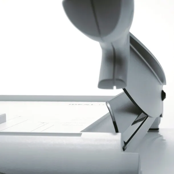 Nóż uniwersalny o kroju laserowym i szyna tnąca z wysokiej jakości stali specjalnej z powłoką antyadhezyjną. Przezroczysta szyna zaciskowa z ochroną przed poślizgami i zintegrowanym, precyzyjnym cięciem. Dwa urządzenia do papieru (z przodu i z tyłu) oraz dwa skale wymiarowe (cm/mm). Ogranicznik tylny (może być umieszczony na przednim lub tylnym papierze). Formaty papieru od A4 do A6 i popularne formaty zdjęć nadrukowane na stole do cięcia. Uwaga!