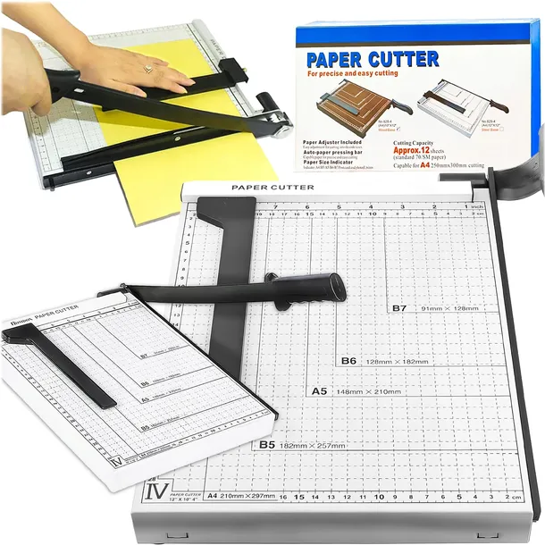 Mocna metalowa gilotyna do cięcia papieru z miarką i ogranicznikiem Papper Cutter A4