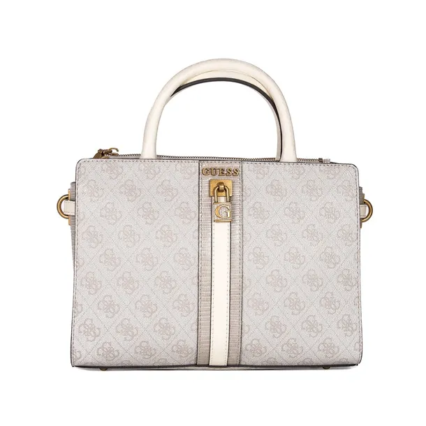 Przedstawiamy piękną, zapinaną na suwak, wykonaną z wysokogatunkowego tworzywa w kolorze jasno szarym torbę marki Guess. Wnętrze torby obszyte elegancką, jasną podszewką z nadrukiem logo marki. Wewnątrz znajdują się trzy kieszonki w tym jedna zapinana na zamek. Torba posiada dwie wygodne rączki z doczepianym brelokiem i dopinany pasek z regulacją długości do 120 cm. Przód torby ozdobiony pionowym paskiem z logo marki i subtelną z zawieszką. W tylnej ścianie torby dodatkowa kieszeń na suwak. Wszystkie metalowe elementy są w kolorze starego złota. Spód torebki zabezpieczony metalowymi nóżkami ochronnymi. Wymiary całkowite torby to: wysokość - 21 cm, szerokość 28 cm, głębokość 11 cm. Bardzo modna, poręczna będzie wspaniałą ozdobą wielu stylizacji.