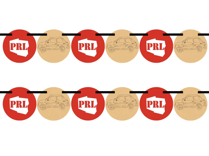 Papierowa girlanda z zestawu PRL, idealna na zabawę i imprezę w starym stylu.Długość: 500 cm.Wymiar flagi: 9,5 cm.Jeden komplet zawiera 12 dużych elementów.