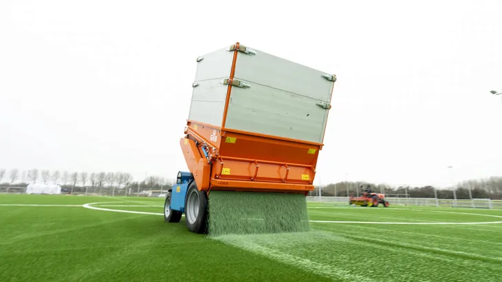 Sztuczna murawa wymaga równomiernego wypełnienia nawierzchni boiska piaskiem, granulatem SBR, TPE lub korkiem. Równa warstwa wysokiej jakości wypełnienia jest niezbędna do utrzymania boiska do piłki nożnej w dobrym stanie technicznym. Maszyna Infiller firmy GKB służy do wydajnego rozprowadzania granulatu na boisku ze sztuczną murawą.