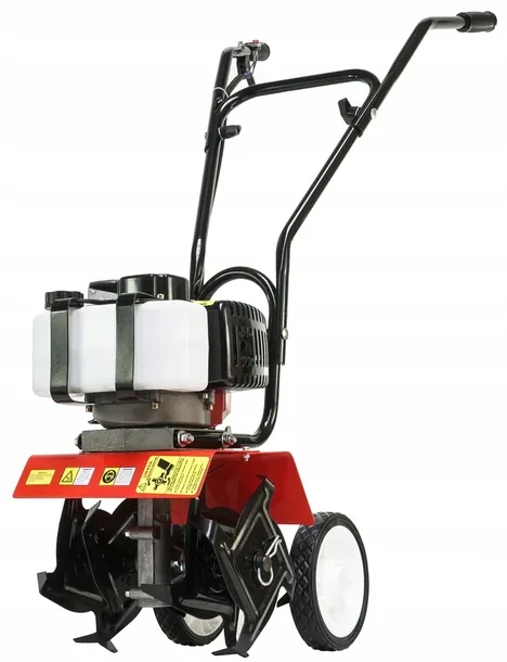 VERKE to spalinowa glebogryzarka napędzana 2-suwowym silnikiem do prac przydomowych. Doskonale nadaje się do pielenia dużych połaci pola i rozdrabniania gleby o dużych bryłach. Dzięki dużej mocy silnika spalinowego, stalowe noże samoczynnie wgryzają się w glebę. Jest niezwykle pomocna przy wprowadzaniu nawozu, torfu i kompostu. Idealne urządzenie do przydomowych ogródków i działek.