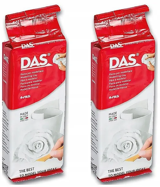 Glinka samoutwardzalna DAS 250g w kolorze białym. Dostępna w wygodnym opakowaniu z zawieszką.