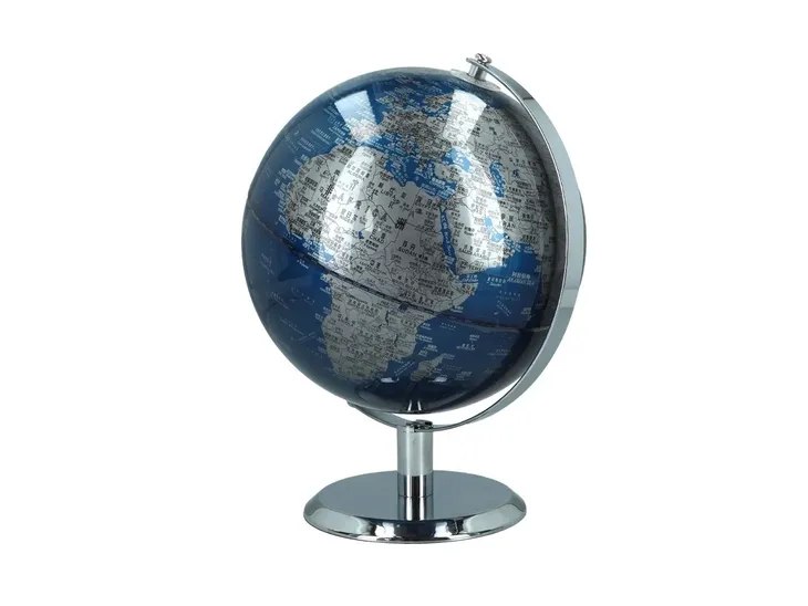 Utrzymany w kolorystyce niebiesko - srebrnej, bardzo elegancki globus będzie świetną dekoracją salonu. A może będzie netchnieniem do podróży? Nazwy geograficzne w języku angielskim i chińskim poszerzarzą horyzonty :)