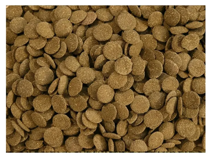 Ekstrudowana karma w postaci tonących wafelków z dodatkiem glonów Spirulina oraz składników roslinnych.