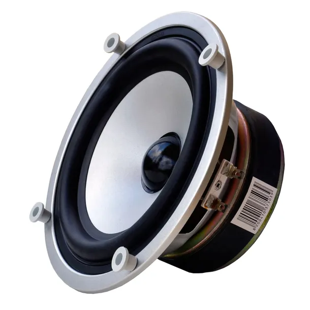 Woofer ze srebrną membraną papierową na miękkim zawieszeniu. Srebrny blaszany kosz.
