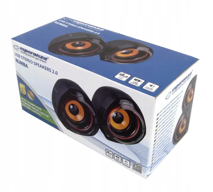 Wysokiej jakości stereofoniczne głośniki do notebooków i komputerów stacjonarnych. Gwarantują czyste i naturalne brzmienie dźwięku. Współpracują ze wszystkimi komputerami posiadającymi wyjście głośnikowe i wyjście USB. Posiadają wbudowaną regulację głośności. Wysokiej jakości materiały użyte do produkcji zabezpieczają przed elektryzowaniem się i przed generowaniem zakłóceń elektromagnetycznych.