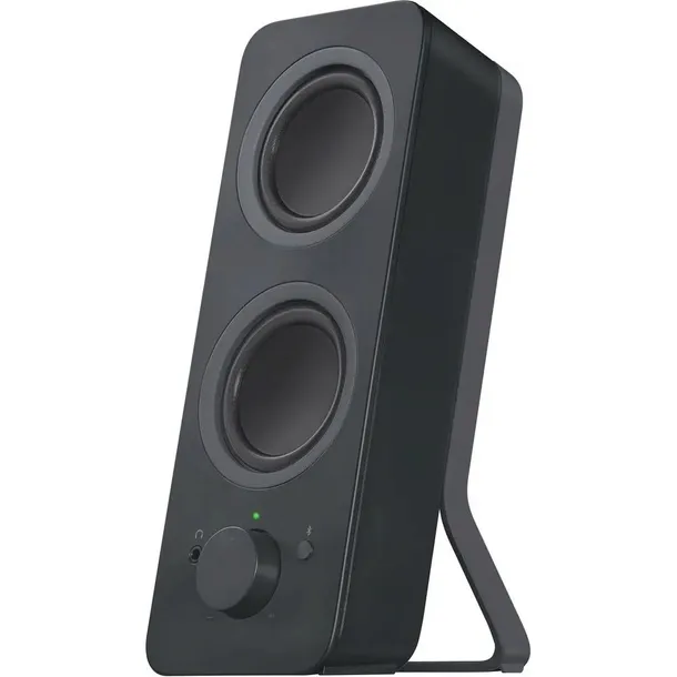 Korzystaj z bezprzewodowego przesyłania dźwięku z maksymalnie dwóch urządzeń Bluetooth lub podłącz urządzenie do wejścia 3,5 mm. Dzięki technologii Logitech Easy-Switch™ możesz płynnie przełączać się między źródłami dźwięku — wystarczy nacisnąć „Pauza” dla jednego źródła dźwięku i „Odtwórz” dla drugiego. Moc 10 W zapewnia czysty, wypełniający pomieszczenie dźwięk dzięki konstrukcji z czterema głośnikami. Dwa głośniki tworzą idealną równowagę między tonami średnimi i wysokimi, a dwa pasywne korpusy dźwiękowe zapewniają bas. Przycisk parowania Bluetooth, włącznik/wyłącznik, regulacja głośności i gniazdo słuchawkowe są łatwo dostępne na prawym głośniku.