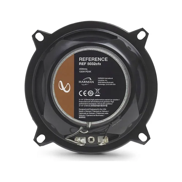 Dokładny, dźwięk wysokiej jakości Nowe głośniki INFINITY Reference REF-5032CFX zostały zaprojektowane, aby dostarczać charakterystycznego dźwięku marki Infinity w jeszcze większej liczbie pojazdów. Posiadają one tweetery z tekstylnymi membranami napędzanymi na krawędziach dla gładkich, klarownych tonów wysokich, a większe modele oferują regulowaną kontrolę poziomu wyjścia tweetera do optymalizacji wysokich częstotliwości w zależności od lokalizacji instalacji lub preferencji słuchacza. Nadwymiarowe stożki Plus One™ zapewniają większą powierzchnię dla wyższej produkcji basów i poprawionej wydajności średnich tonów.