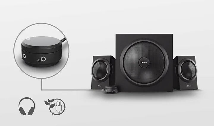 Głośniki TRUST Yuri 2.1 wyróżniają się eleganckim i dopracowanym designem. Obudowy wykonane są z wysokogatunkowego drewna i plastiku, co gwarantuje nie tylko estetyczny wygląd, ale także trwałość i niezawodność.