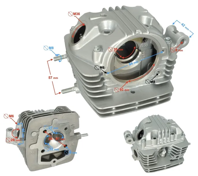 - rozstaw szpilek kolektora wydechowego: 57 mm