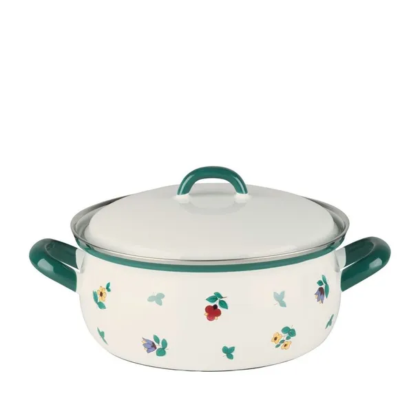 Charakterystyka: Niski garnek z dwoma emaliowanymi uchwytami. Wysokość bez pokrywy 8,90 cm. Średnica 20 cm. Pojemność 2 litra. Wysoka beczułkowata ściana boczna. Solidna chromowana obręcz. Pokrywka z uchwytem. Nadaje się do wszystkich typów kuchenek (gazowych, elektrycznych, szklano-ceramicznych, indukcyjnych, otwartego ognia). Energooszczędne gotowania. Odporne na przecięcia i zarysowania. Hamujący rozwój bakterii i neutralny zapachowo. Łatwe do czyszczenia. Neutralne dla CO2 Wyprodukowany w Austrii Nasze niskie garnki Gmundner z pokrywkami mają beczułkowaty kształt i dwa emaliowane uchwyty. Istnieją w sumie trzy rozmiary od 1 do 2 litrów. Pokrywki dobrze leżą na garnku i pełnią funkcję monitorów energii: gdy tylko pokrywka garnka zacznie grzechotać, czas zmniejszyć ciepło i tym samym oszczędzać energię elektryczną. W zależności od kuchenki można ją całkowicie wyłączyć na około 5 minut przed końcem gotowania, ponieważ emalia długo zatrzymuje ciepło. Dlatego zdecydowanie zalecamy używanie rękawic do podnoszenia rondli i pokrywek, ponieważ emaliowane uchwyty również zatrzymują ciepło. Zaletą emaliowanych uchwytów jest jednak to, że można bezpiecznie wsunąć garnek do piekarnika, aby był ciepły. Emalia materiałowa składa się z żelaza, które zostało stopione ze szkłem w wysokich temperaturach, czyli z naturalnych surowców. Nasze naczynia emaliowane mogą być używane na wszystkich typach kuchenek (gazowych, elektrycznych, szklano-ceramicznych, indukcyjnych, a nawet nad otwartym ogniem). Dzięki żelaznemu rdzeniowi ciepło jest szybko przewodzone, a następnie magazynowane: dla zrównoważonego, energooszczędnego gotowania. Nieporowata, gładka szklana powierzchnia gwarantuje idealną higienę. Jest to neutralne dla aromatów i hamujące rozwój bakterii, a także łatwe do czyszczenia. Odpowiednio użytkowane i pielęgnowane naczynia emaliowane będą służyć przez długi czas i zachowają swój typowy połysk. Garnek do mięsa jest wysokim naczyniem i dlatego idealnie nadaje się do gotowania potraw z dużą ilością płynu, zaczynając od zup, potraw mięsnych mięsnych, takich jak gotowany filet, gulasz, ragout, makaron, warzywa, ziemniaki i wiele więcej Możesz stworzyć swój własny zestaw kuchenny z szerokiej gamy RIESS i stale go rozbudowywać lub po prostu wybrać ulubiony element.