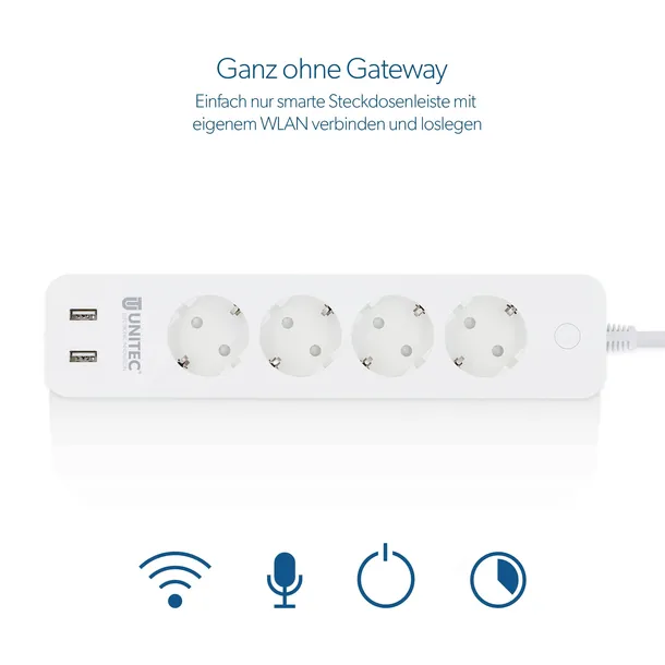 UNITEC 30798 WIFI Listwa zasilająca 4x2 | Smart gniazdka WLAN z timerem | Pomiar kosztów energii | Sterowanie głosowe i aplikacja | Z 2 wyjściami USB