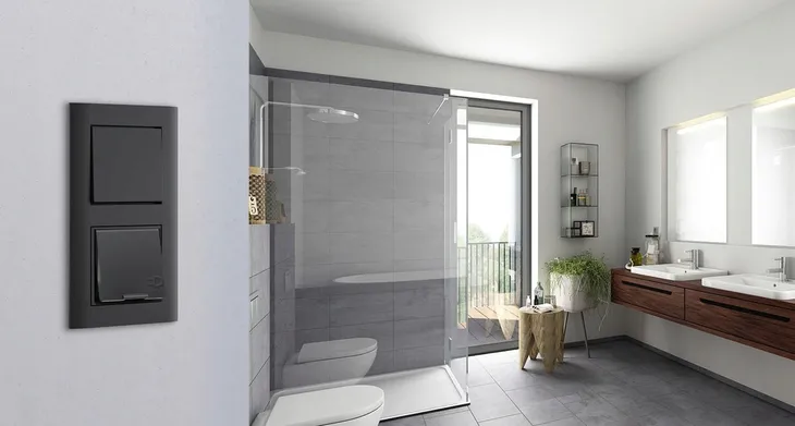 - Interruttore Athenis do instalacji w pomieszczeniach wilgotnych, klasa ochrony IP 44, co zapewnia ochronę przed zachlapaniami wodą.