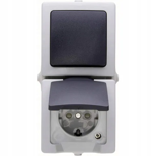 - Gniazdo i włącznik w praktycznej pionowej kombinacji.