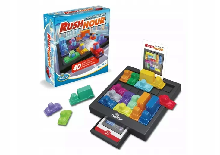 Wyprowadź swoje czerwone autko ze strasznego korka! Wybierz kartę z zadaniem i umieść samochody i ciężarówki na planszy tak, jak określono na karcie. Przesuwaj blokujące wyjazd osobówki i ciężarówki, by odblokować sobie drogę. Wyjedź samochodem z planszy przez wyjazd i… wygrywasz! Zawartość opakowania: • 40 kart zadaniami i rozwiązaniami (poziom od początkującego do ekspert), • czerwony samochód, • 15 blokujących pojazdów, • plansza, • torba podróżna, • instrukcja. Wymiary opakowania: 20.0 x 23.0 x 6.0 cm