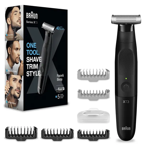 Golarka Braun XT3200 to niezawodne narzędzie do stylizacji, które łączy funkcje trymera do brody i ciała w jednej kompaktowej formie. Dzięki innowacyjnemu ostrzu 4D i elastycznej głowicy, z łatwością osiągniesz precyzyjne rezultaty w krótszym czasie.Wodoodporność oraz antypoślizgowy uchwyt zapewniają komfort użytkowania na mokro i sucho. Wydajne zasilanie akumulatorowe gwarantuje 45 minut pracy po jednym naładowaniu, dając Ci swobodę działania bez przerw.