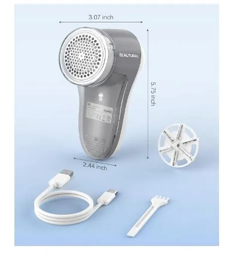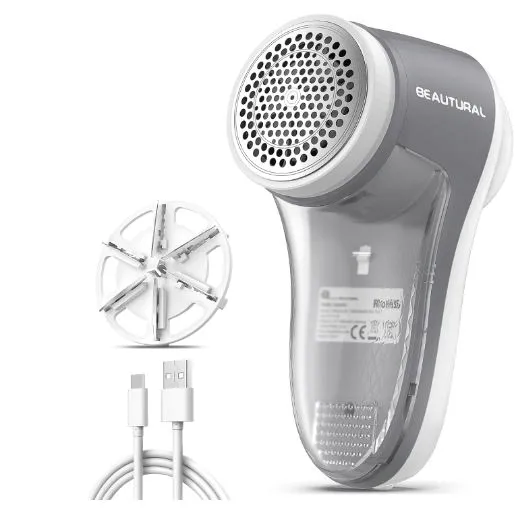 BEAUTURAL Golarka do tkanin Elektryczna, Produkt odpowiedni do wszystkich ubrań, USB‑C Akumulatorowa, 9000 obr/min, z wymiennymi ostrzami
