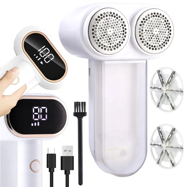 MOCNA DUŻA GOLARKA DO UBRAŃ PODWÓJNA 2x SKUTECZNIEJSZA DESIGN 2024 AKUMULATOROWA BEZPRZEWODOWA +WYŚWIETLACZ LED POKAZUJE PROCENT NAŁADOWANIA, + 3 stopniowa regulacja prędkości +KABEL + SZCZOTECZKA