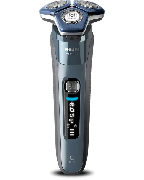Golarka Philips z serii 7000 gładko przesuwa się po skórze, jednocześnie przycinając każdy włos nawet na 3-dniowym zaroście. Golarka wyposażona jest w zaawansowaną technologię SkinIQ, która wykrywa, dostosowuje się i prowadzi ruch, zapewniając lepszą ochronę skóry.