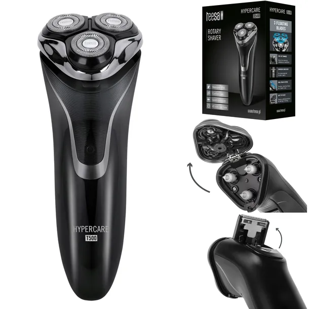 Potrzebujesz urządzenia, które sprosta każdemu zadaniu? Właśnie taka jest golarka rotacyjna Teesa HYPERCARE T500. Podwójne ostrza tnące idealnie dopasowują się do kształtu twarzy, bez problemu radząc sobie z najtwardszym zarostem.