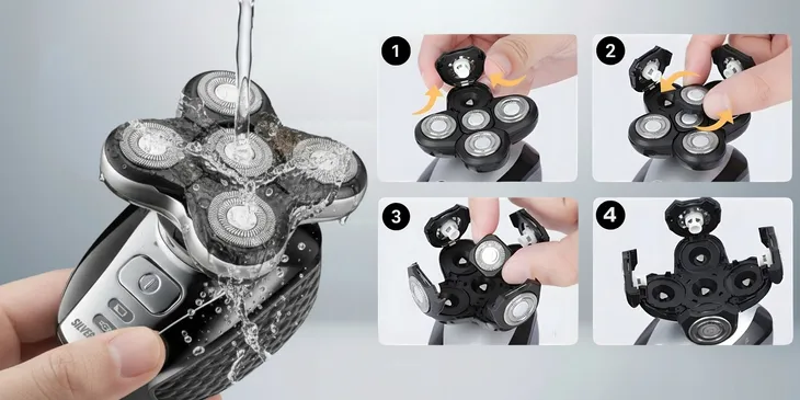 Golarka Silver Sharky HGPT01 Men's Shaver z pięcioma głowicami tnącymi pozwala ogolić całą głowę w mniej niż 2 minuty.