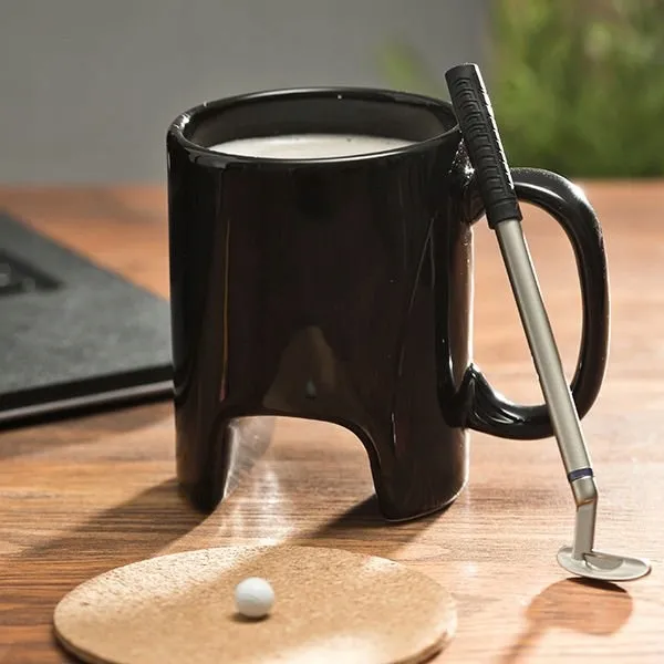 Golfowy kubek to nie tylko bardzo oryginalne naczynie do picia kawy czy herbaty, ale także fajny gadżet na biurku. Tu będzie dobrze się prezentował, a w chwilach nudy i przy odrobinie wyobraźni pozwoli nam przenieść się na zielone pola golfowe, gdzie krzycząc fire in the hole...ehhh... znaczy hole in one będziemy wbijać piłeczkę do dziury. Kij golfowy jest przy okazji długopisem, co dodatkowo czyni ten zestaw praktycznym i eleganckim