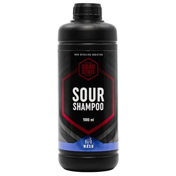 Good Stuff Sour Shampoo 1000 ml to kwaśny szampon samochodowy o pH ~3,5, stworzony do skutecznego usuwania osadów mineralnych, śladów po twardej wodzie i neutralizacji zasadowych środków typu pre-wash lub deironizer. Idealny do przygotowania lakieru pod dekorację lub nałożenie nowych warstw ochronnych. Bezpieczny dla lakieru, szkła i felg, ale zaleca się tylko sporadyczne stosowanie na świeżo zabezpieczonych powierzchniach.