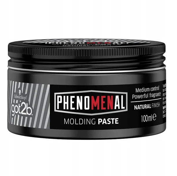 To pierwsza linia w portfolio got2b stworzona specjalnie z myślą o mężczyznach. Nowe produkty got2b phenoMENal dodadzą każdej fryzurze klasy i niepowtarzalnego stylu .Pasta modelująca got2b phenoMENal - nada włosom naturalny wygląd i blask, tworząc ponadczasowy styl i nie wysuszając przy tym włosów.