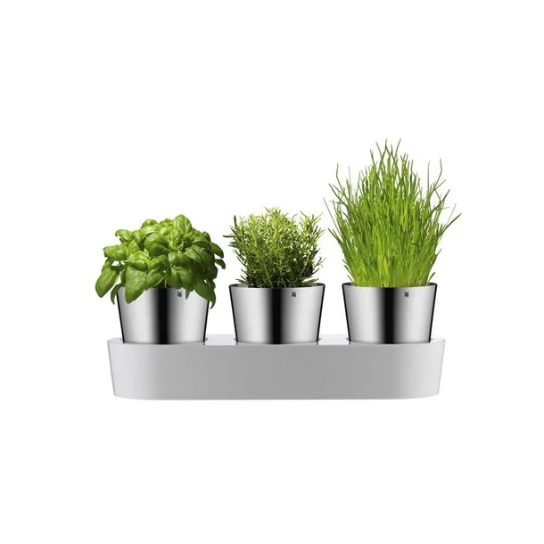 Doniczka na zioła pozwala przechowywać je na parapecie czy blacie kuchennym. Dzięki świeżym ziołom nasze potrawy nabierają wyjątkowego smaku i aromatu. Estetycznie wykonana doniczka spełnia też funkcję dekoracyjną, dodając domowego charakteru naszym wnętrzom.
