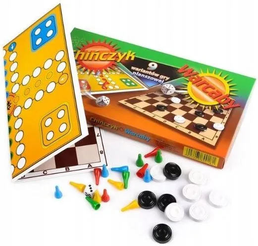 Zagraj w super grę planszową Warcaby i Chińczyk!W tej grze masz aż 9 wariantów gry planszowej. Są to: zając i psy, blokada, celnicy i przemytnicy, warcaby Halma, koniki polne, chińczyk, warcaby, antywarcaby, warcaby naroż zawiera klasyczne warcaby.Użyj swojej wyobraźni i strategicznego myślenia do podejmowania właściwej zawiera: planszę , pionki, kostkę, bierki do warcabów oraz instrukcję w języku :+3Ilość graczy: 2-4 osób.