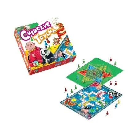 Zestaw zawiera 2 gry planszowe: CHIŃCZYK to jedna z najbardziej popularnych i lubianych losowych gier planszowych. Podobnie jak Szachy, CHIŃCZYK wywodzi się z Indii, a jego pierwowzorem była starohinduska gra Pachisi. W CHIŃCZYKA można grać w dwie, trzy lub cztery osoby. Każdy z graczy otrzymuje po cztery pionki, a celem gry jest jak najszybsze wprowadzenie ich przez graczy na wyznaczone pola, kończące obieg toru planszy. O przebiegu gry w znacznej mierze decydują losowe wyniki rzutów kostka, ale także strategia przyjęta przez graczy. Gra jest bardzo prosta i gwarantuje doskonałą, emocjonującą zabawę dla dzieci i dorosłych. Na planszy Chińczyka można rozegrać 3 różne wersje gry.