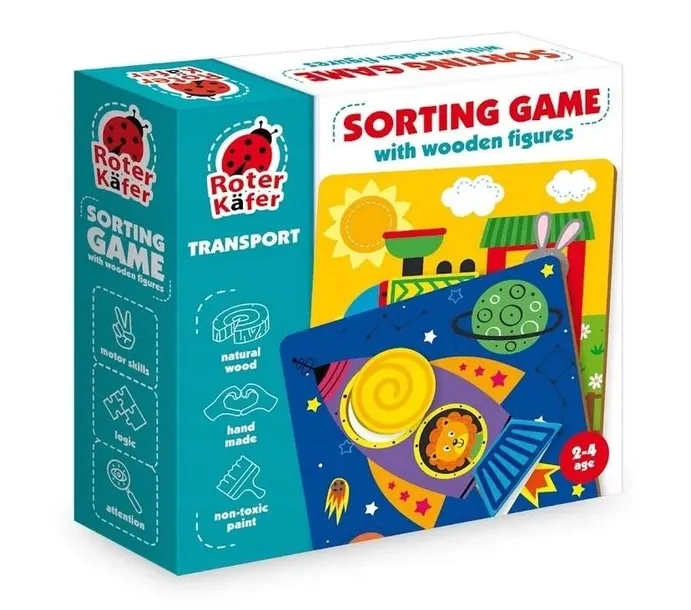 Poznawajcie figury geometryczne i kolory w ciekawej formie gry. Wybierzcie dowolną kartę z transportem i szukajcie figur, które uzupełniłyby dowolne obrazki na karcie. Zajączek jedzie w pociągu. Uzupełniamy obrazek błękitnym kołem (koło) oraz żółtym prostokątem (część wagonika). Gotowe! Gra rozwija drobną motorykę, pamięć, koncentrację, wrażenia dotykowe oraz logiczne myślenie. Figurki wykonano z drewna naturalnego. Zawierają wyłącznie bezpieczne farby. Wiek: 2-4 lata.