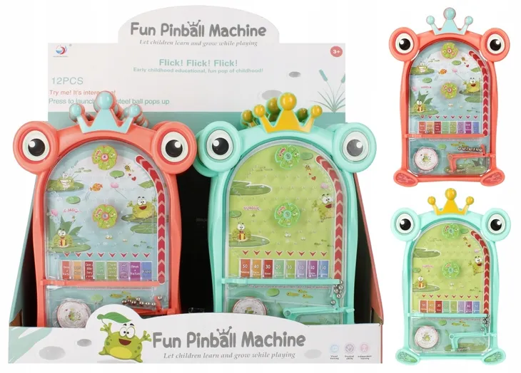 Zalety produktu: Prosta gra zręcznościowa, którą można zabrać ze sobą w podróż. Gra Flipper to super zabawa dla dzieci, zdolność reakcji na ćwiczenia, zdolność równowagi, doskonalenie refleksu i zręczności twojego dziecka, interakcja rodzic-dziecko, ta gra pozwoli wam rozgrywać rodzinne turnieje. Rozpocznij zmaganie, zgarniaj punkty i podbijaj rekordy. Wystarczy wystrzelić kulki ruchomą łapką znajdującą się na dolnej krawędzi flippera tak by kuleczki spadając wpadły w odpowiednie pola z wytycznymi celami, graj i wygrywaj, zbierz jak największą ilość punktów Zawartość zestawu: Gra Flipper. Zabawka występuje w dwóch wersjach kolorystycznych: seledyn, róż. Pakowana w display A& 39;12. Wymiary produktu dł. x wys. x gł. cm 18x17x2 waga produktu kg. 0,16 kg, Wymiary opakowania-display dł. x wys. x gł. cm 37x27x19, waga opakowania-display kg. 2,16 kg. Nie wymaga zasilania bateriami. Przeznaczona dla dzieci w wieku 3 . Pakowana w display po 12szt. W kartonie po 48/96zt.