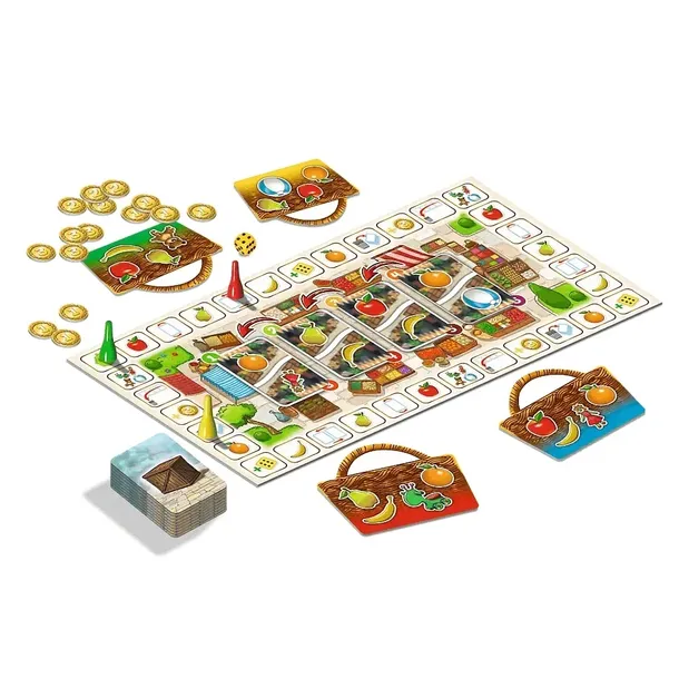 Na Ryneczku - gra planszowa z Rodziną Treflików Na Ryneczku to gra planszowa, w której dzieci towarzyszą Treflikowi, Treflince i ich rodzicom podczas zakupów. Zadaniem graczy jest jak najszybsze skompletowanie produktów z listy zakupów i umieszczenie ich w koszyku. Gra ćwiczy umiejętność planowania, liczenia oraz samodzielnego podejmowania decyzji. Wesoła, angażująca rozgrywka to doskonały sposób na naukę przez zabawę! Gra Na Ryneczku przeznaczona jest dla 2–4 graczy w wieku od 5 lat. Jak grać w Na Ryneczku? Gracze wybierają listy zakupów w formie kolorowych koszyków i poruszają się po planszy, zbierając żetony produktów, które znajdują się na ich liście. Aby zdobyć przedmiot, należy wylosować kartę odpowiadającą danemu produktowi. Wygrywa ten, kto jako pierwszy skompletuje wszystkie rzeczy ze swojej listy i umieści je w koszyku. Gry planszowe z Rodziną Treflików Seria gier z Rodziną Treflików to propozycja dla dzieci w wieku przedszkolnym i wczesnoszkolnym. Każda gra rozwija umiejętności poznawcze i społeczne, zachęca do wspólnego spędzania czasu i nauki przez zabawę. Starannie zaprojektowane ilustracje, kolorowa oprawa graficzna i znane postacie sprawiają, że dzieci chętnie sięgają po gry z tej serii. Wymiary pudełka: 260 x 260 x 40 mm